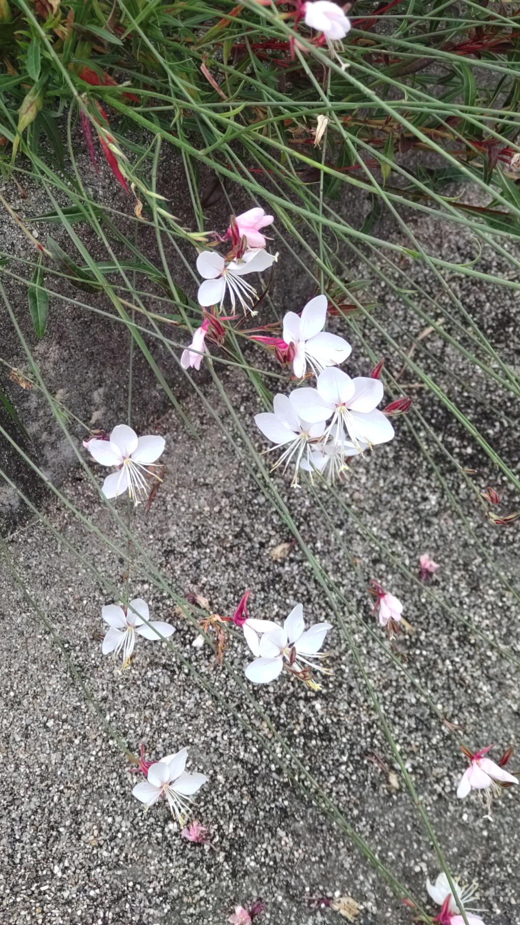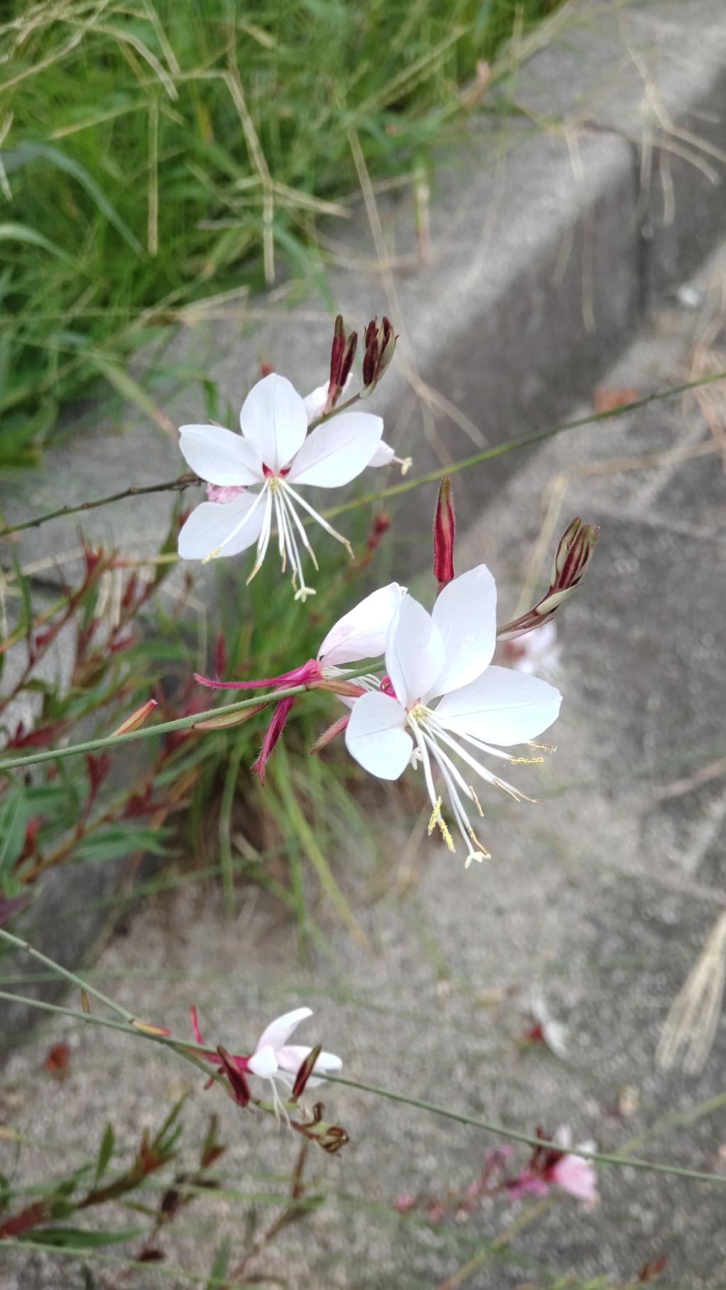 少し引きで撮ってみました。低い所に咲いているというか倒れているのか不明です。