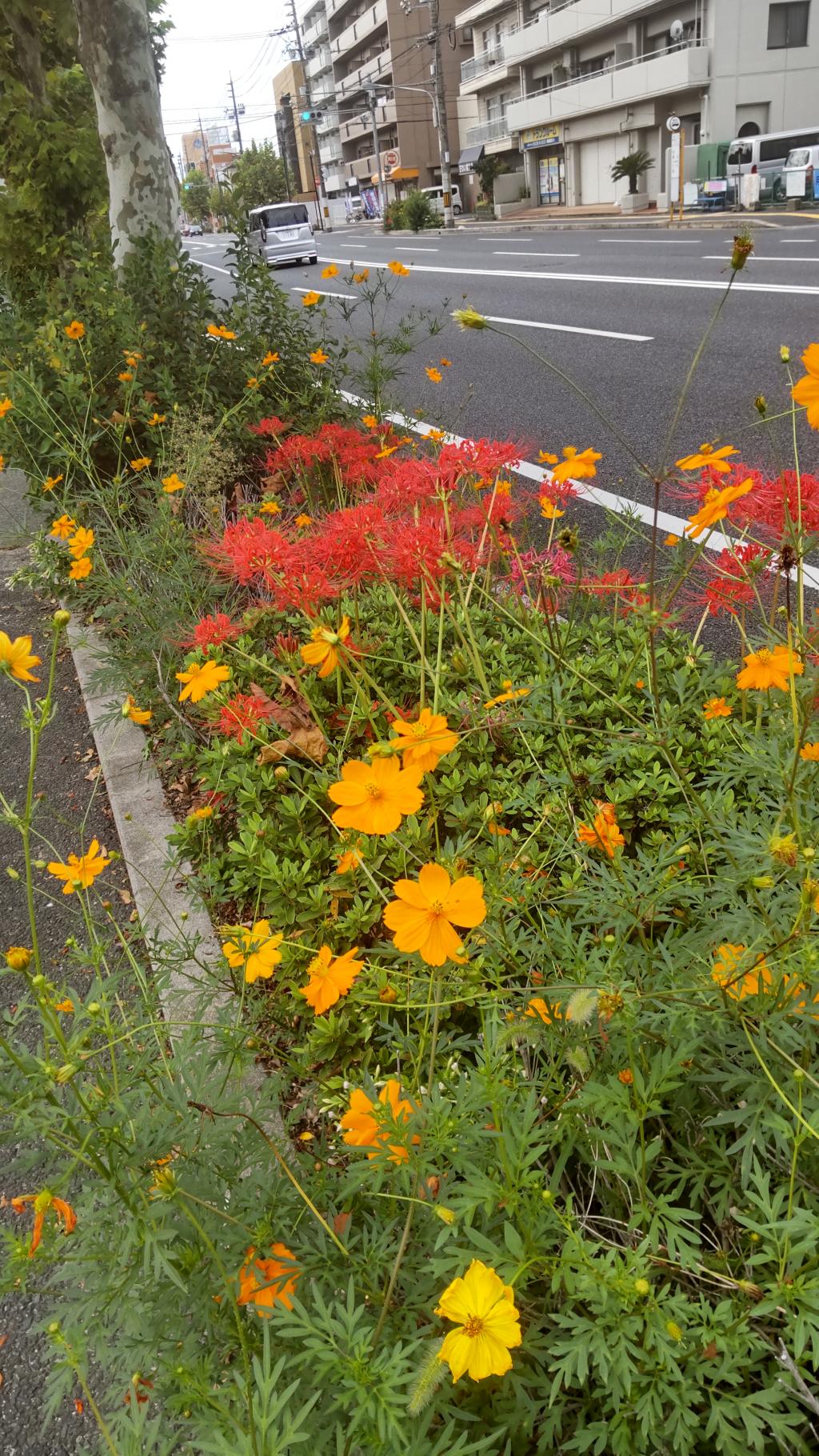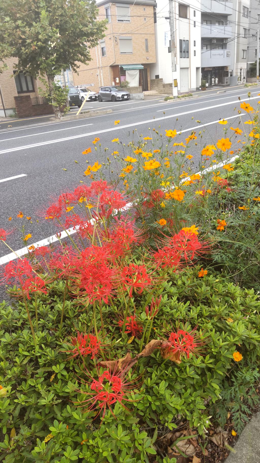 彼岸花とキバナコスモスのコラボー吉島通―2025-09-28