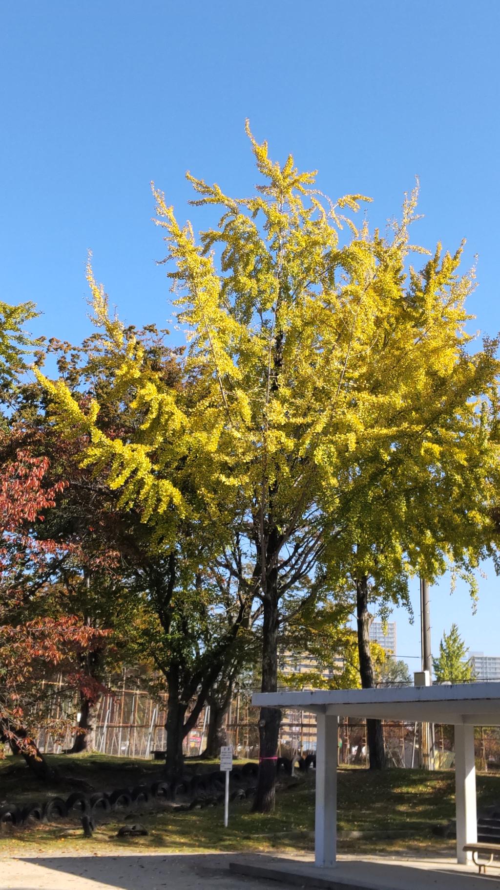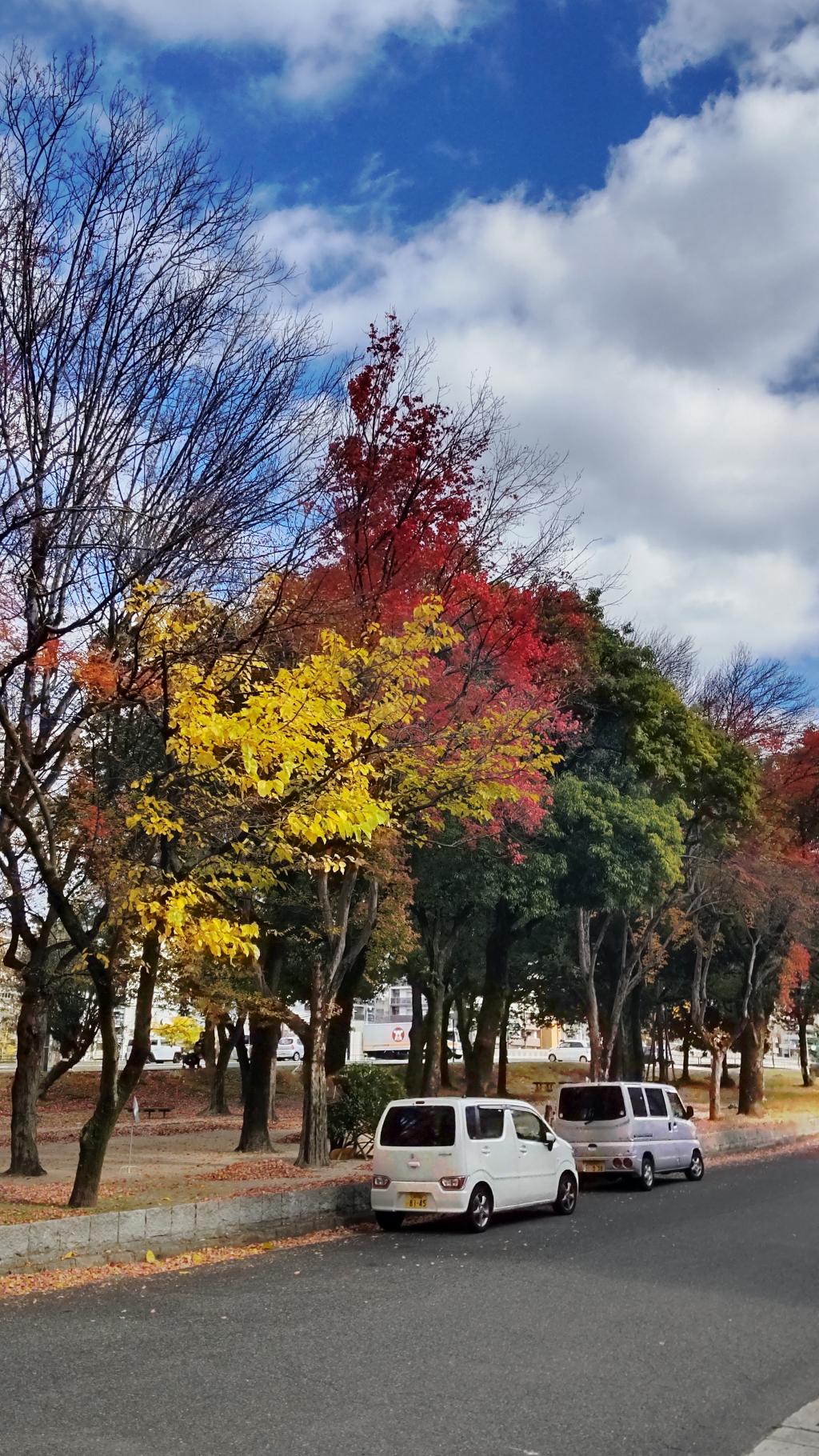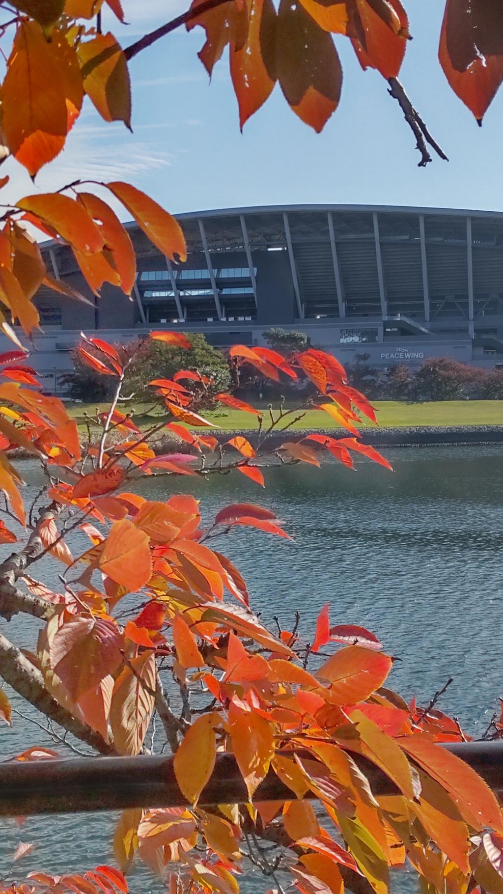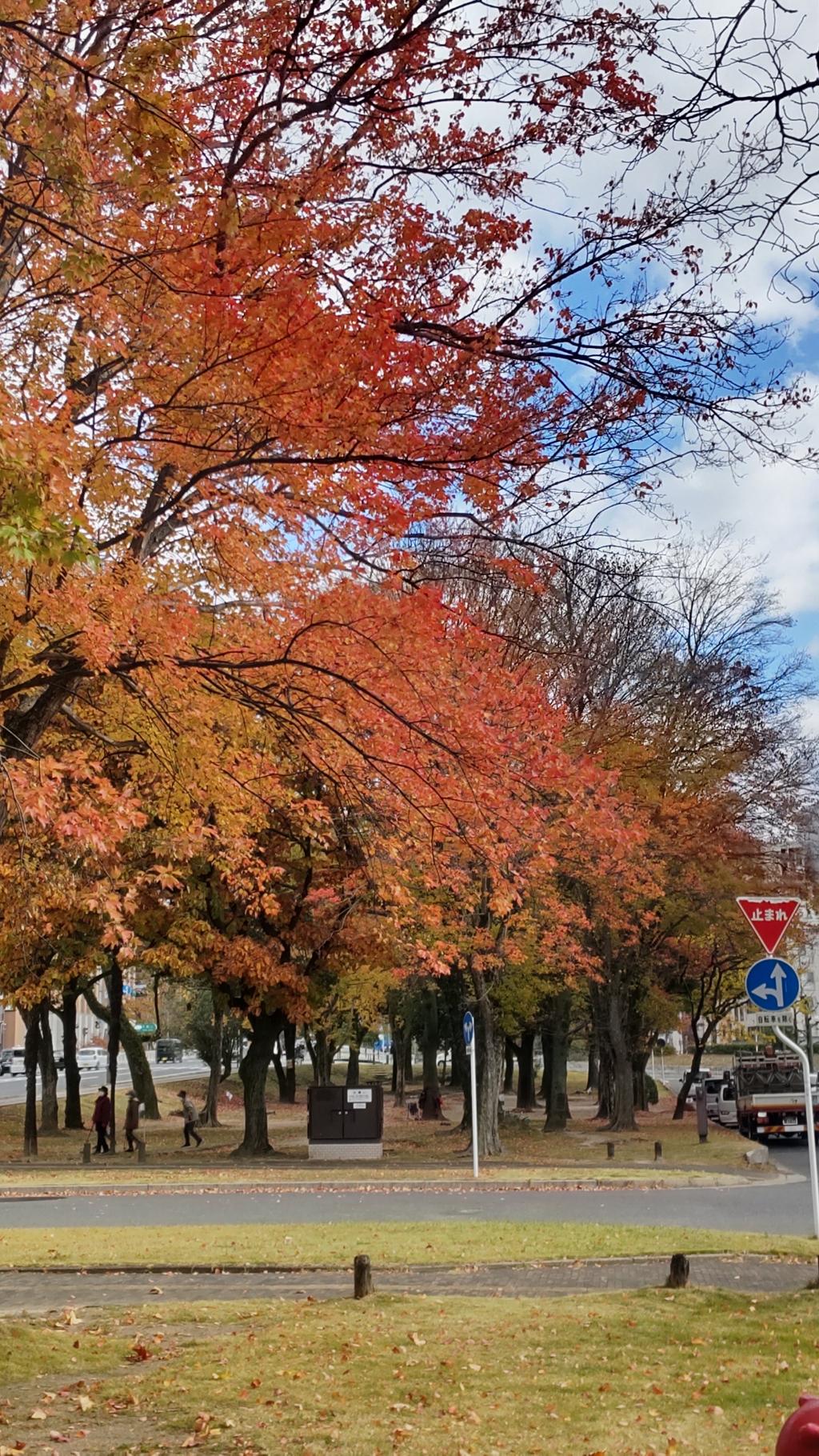 ここ2週、平和大通りの紅葉を撮っていますが、色がイマイチです。代わりにピースウィング対岸の秋色を。これは既にインスタグラムにアップすみです。